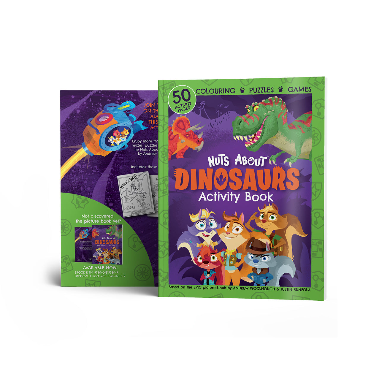 Enjoy more than 50 pages of colouring, mazes, puzzles and games in this activity book based on the Nuts About Dinosaurs picture book by Andrew Woolnough and Justin Runfola.